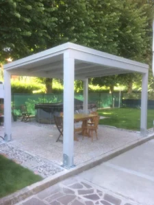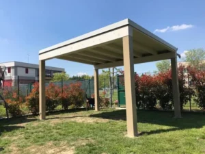Se si hanno a disposizione spazi molto ampi, ci si può orientare su un gazebo, avendo la possibilità di divertirsi nello scegliere tra forme, dimensioni e materiali diversi. Per la forma, è consigliabile seguire quella del giardino; per quanto riguarda i materiali invece, noi utilizziamo il legno lamellare.